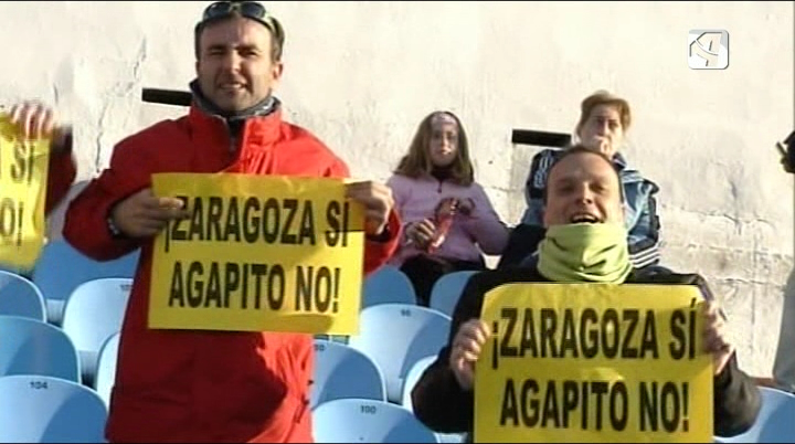 Finalmente, se ha vuelto a recordar el lema de las cartulinas que fueron levantadas mayoritariamente por la afición de La Romareda que no era otro que "ZARAGOZA SÍ, AGAPITO NO" y se ha vuelto a exigir su salida del club lo antes posible, dado que consideramos que la afición habló el domingo alto y claro, a pesar de que el máximo accionista prefirió esconderse en el antepalco para no presenciar la protesta.